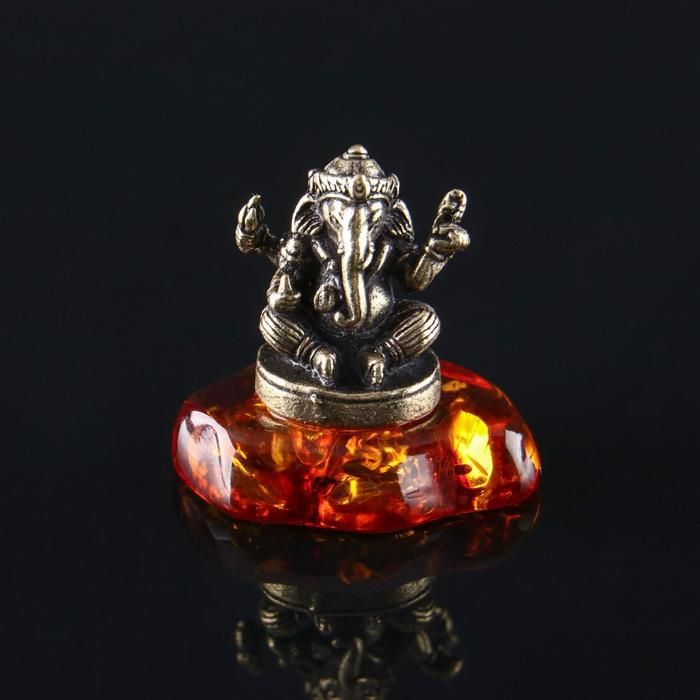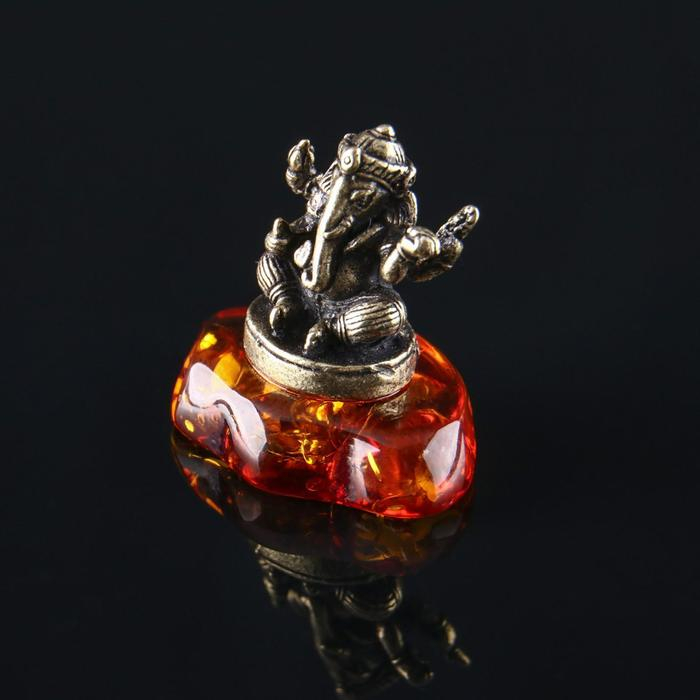Сувенир "Ганеша", латунь, янтарная смола, 1,7х1,7х1,1 см