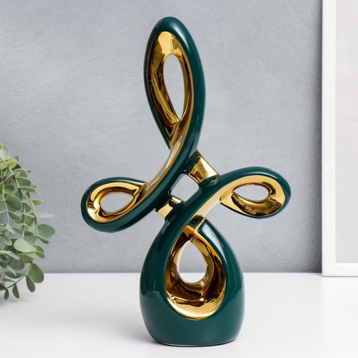 Сувенир керамика "Абстракция. Связь" тёмно-зелёный с золотом 30х20 см