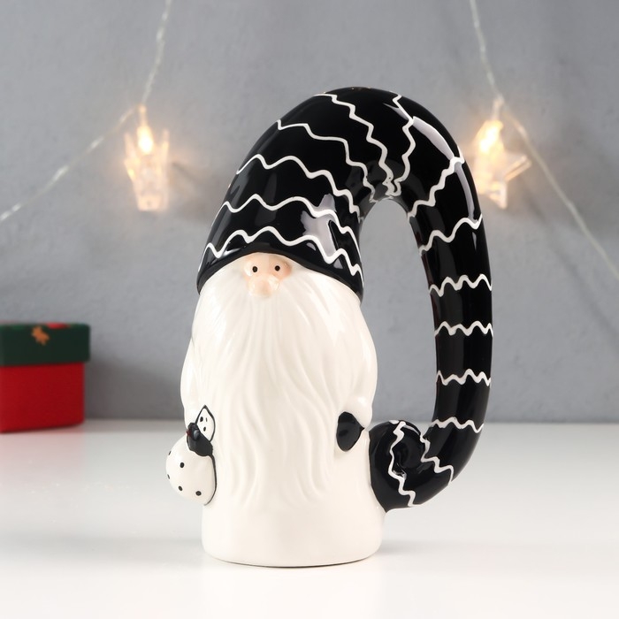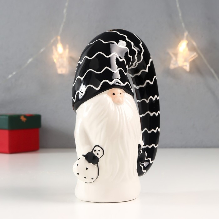 Сувенир керамика "Дед Мороз, чёрный колпак, белый зиг-заг, с мешком" 16,5х11х7,5 см