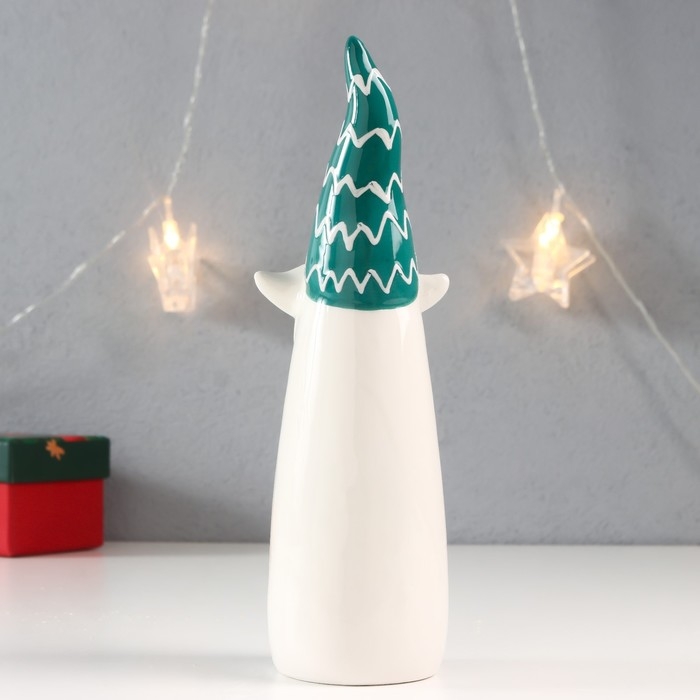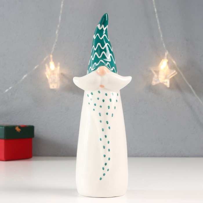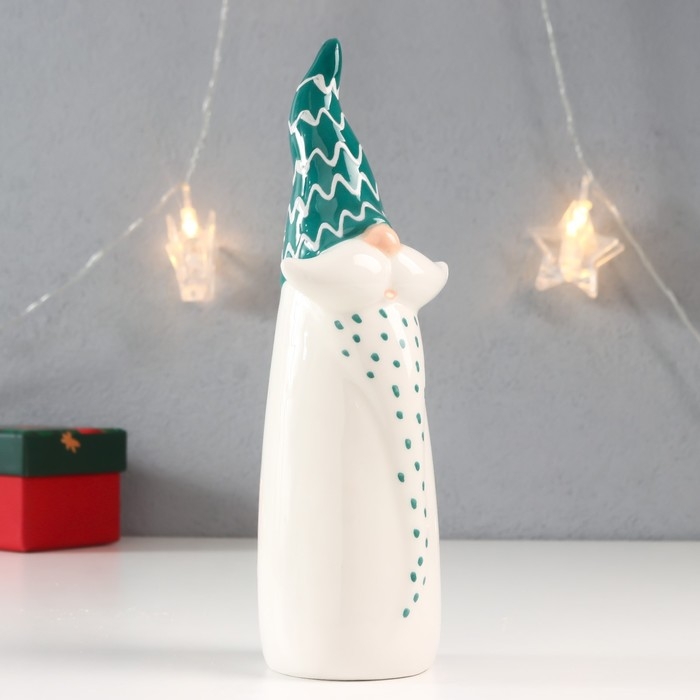Сувенир керамика "Дед Мороз - усатый, зелёный колпак-зигзаг" 21,5х6,4х5,9 см