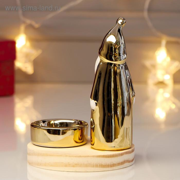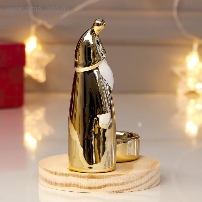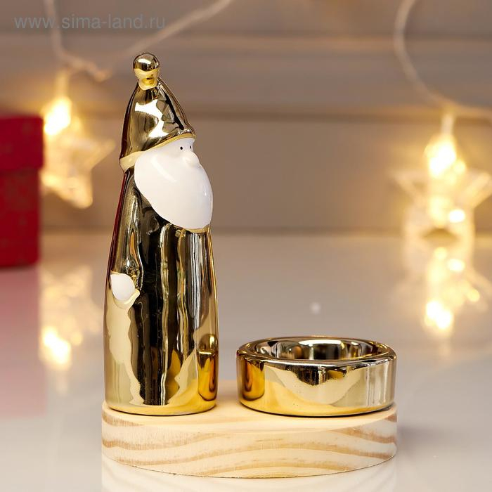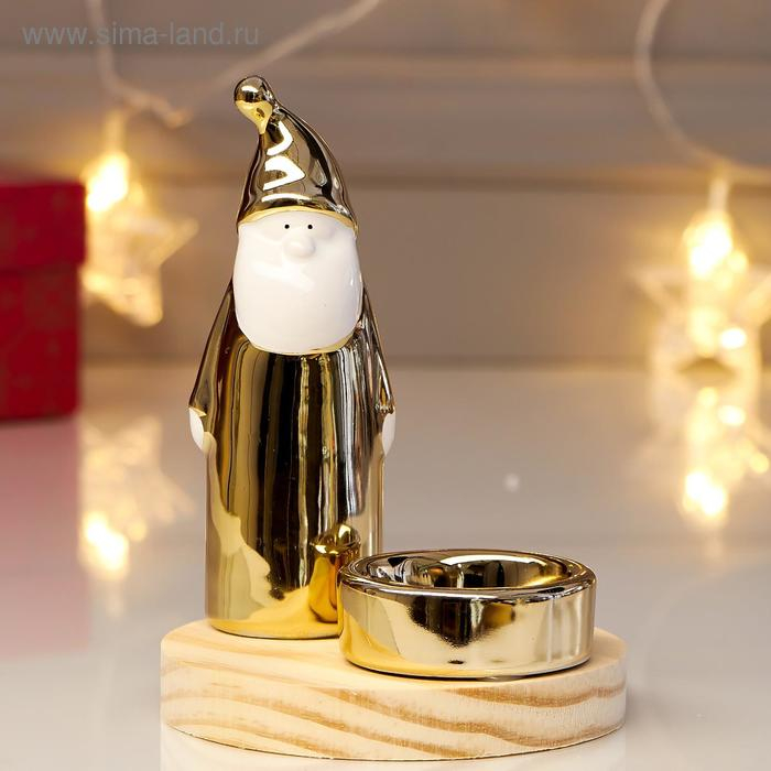 Сувенир керамика, дерево подсвечник "Дед Мороз" золото 13,5х10х10 см