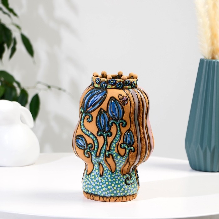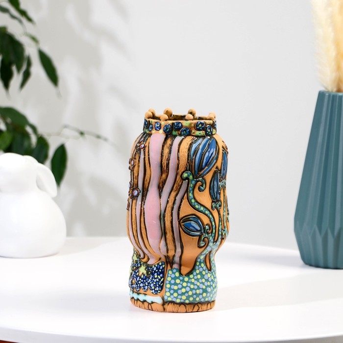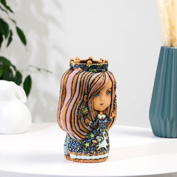 Сувенир керамика "Девочка-фея" с единорогом тёмная (Ваза), h=22 см V=1л