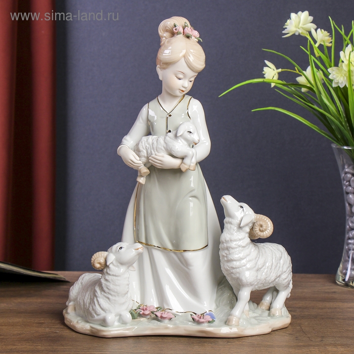 Сувенир керамика "Девочка с барашками" 33х24,5х14 см