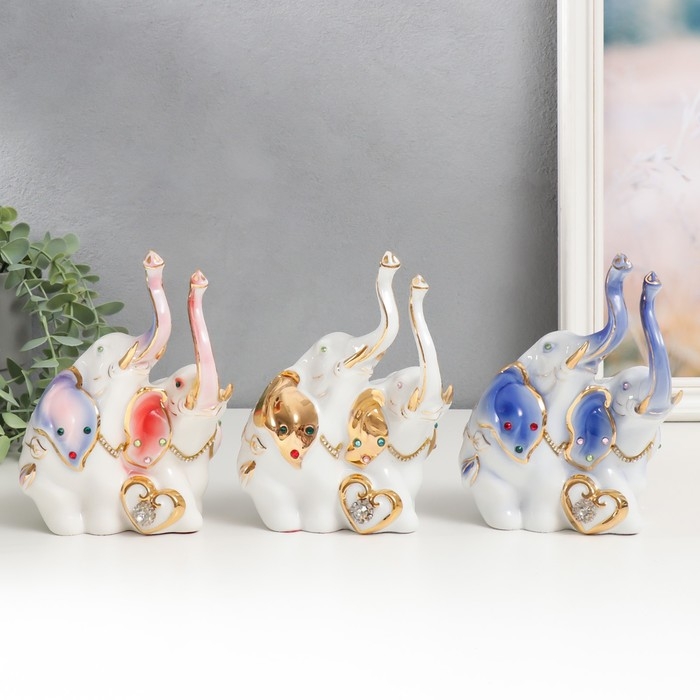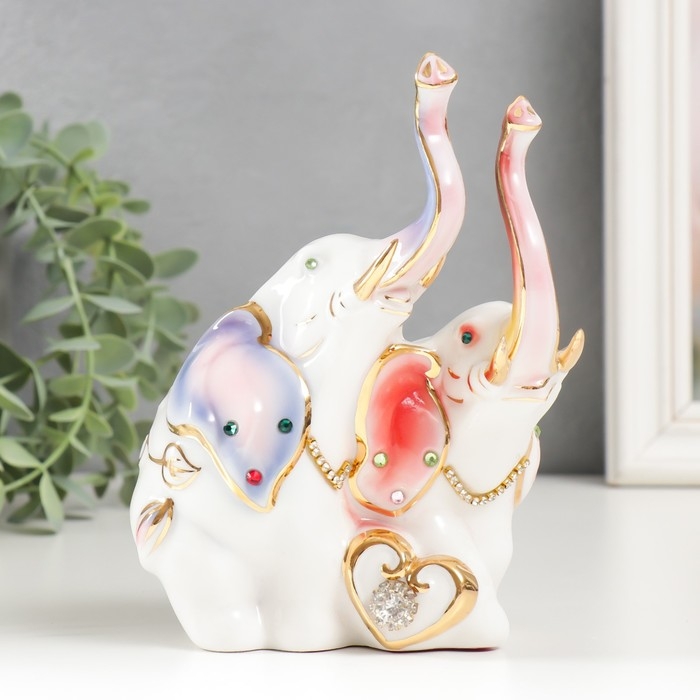 Сувенир керамика "Два слона с сердцем" стразы МИКС 16х13х7 см