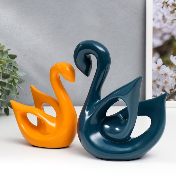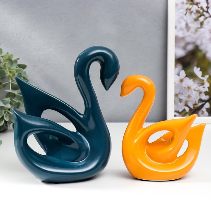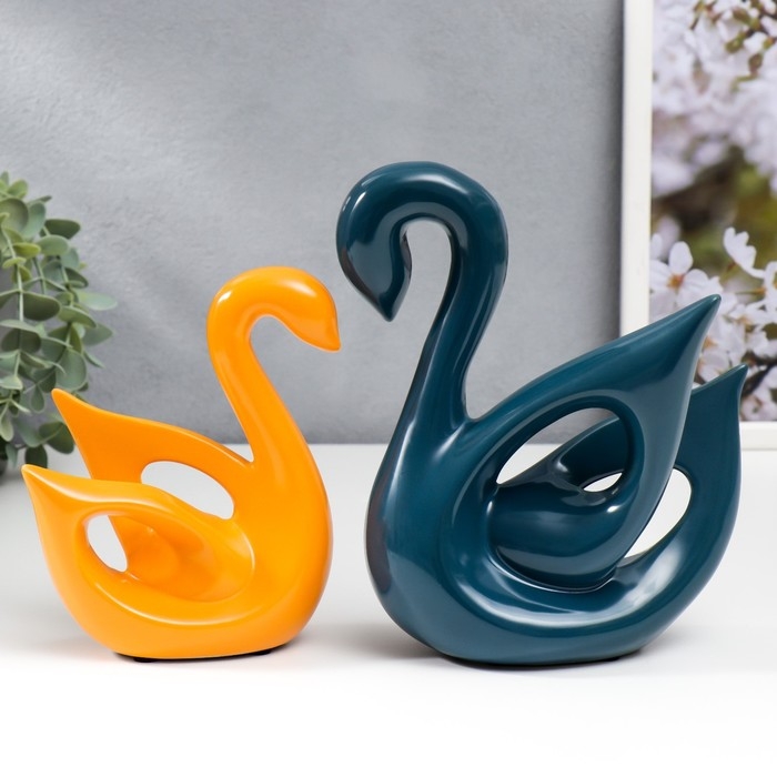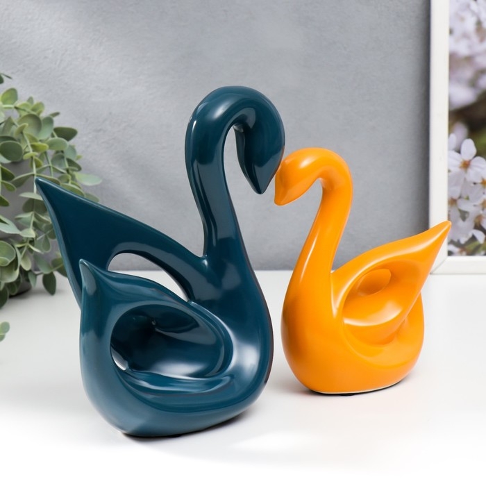 Сувенир керамика "Лебеди синий и оранжевый" глянец набор 2 шт 14х6х15 15х20х20 см