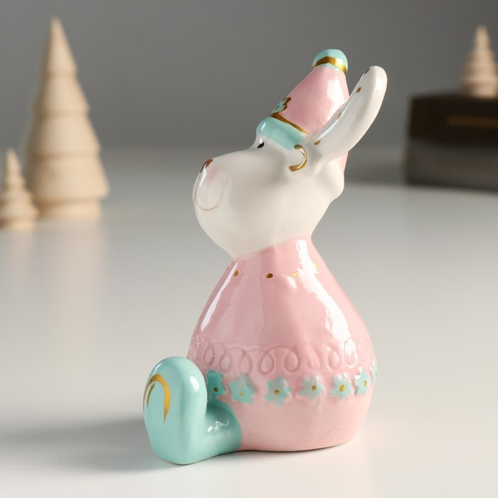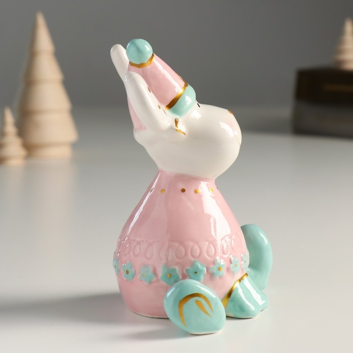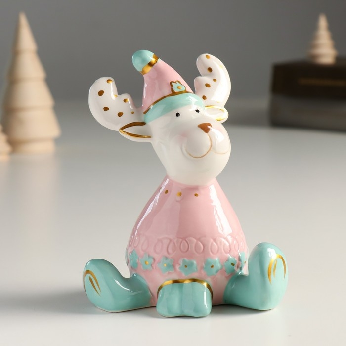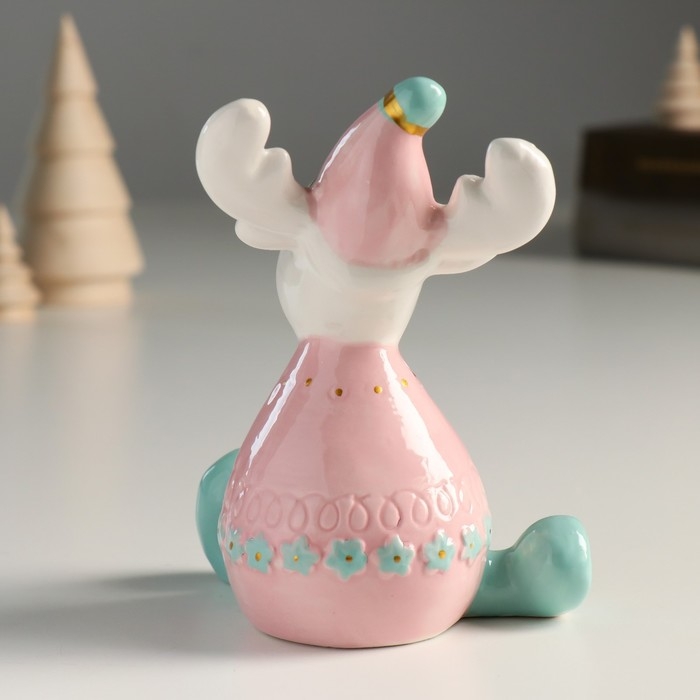 Сувенир керамика "Лосик, розовый свитер и колпак, белые рожки в горох" 12,1х9,8х7 см