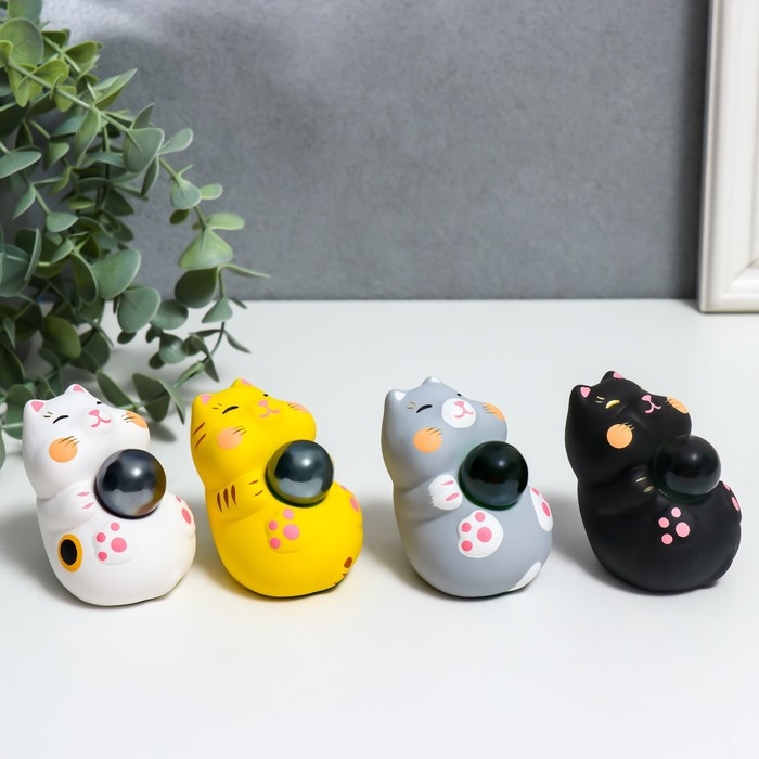 Сувенир керамика "Манэки-нэко со стеклянным шаром" микс 7,5х5х7,6 см