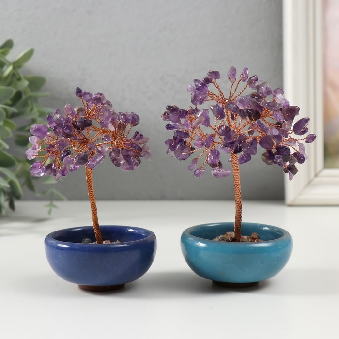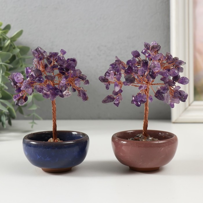 Сувенир керамика, металл, акрил "Деревце удачи в горшочке" под аметист МИКС