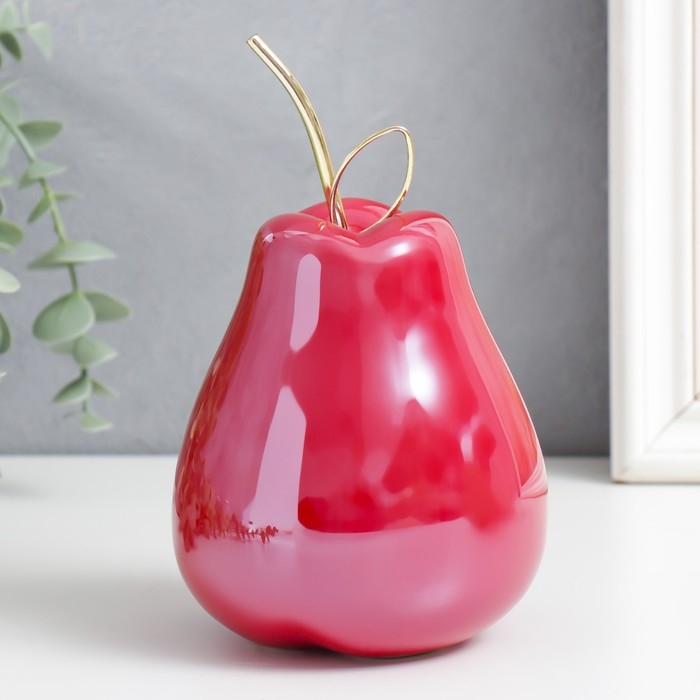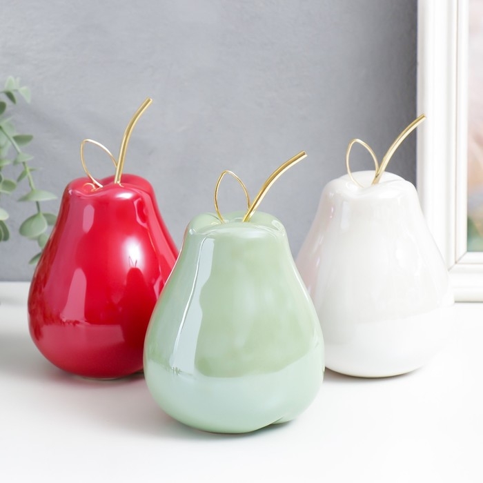 Сувенир керамика, металл "Груша перламутр с веточкой" МИКС 10х10х16 см