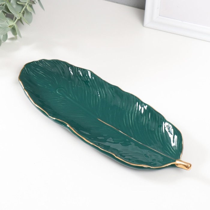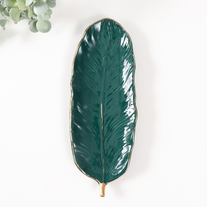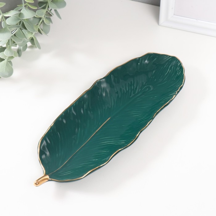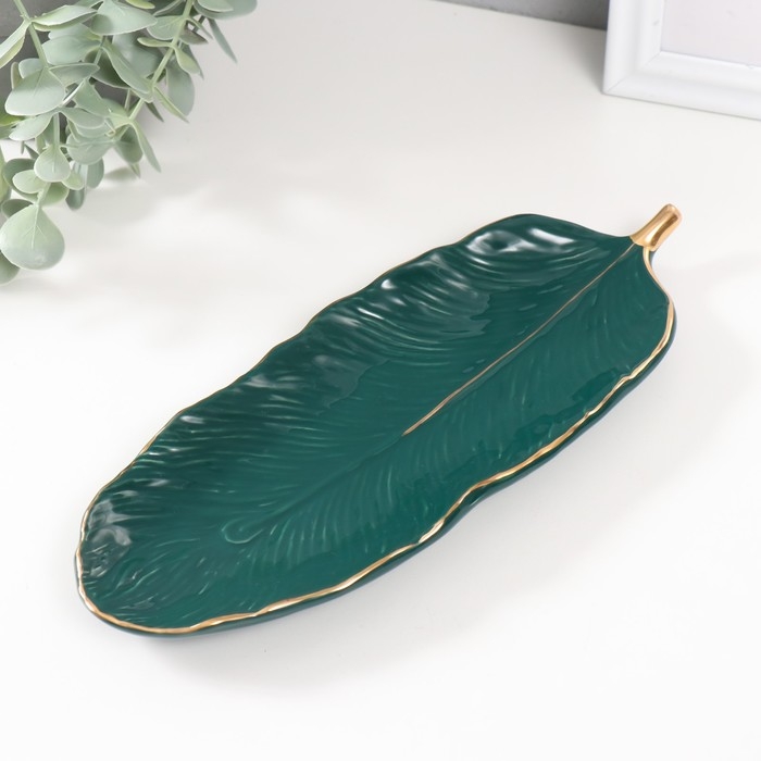 Сувенир керамика подставка "Лист" зелёный 25,5х10х1,5 см