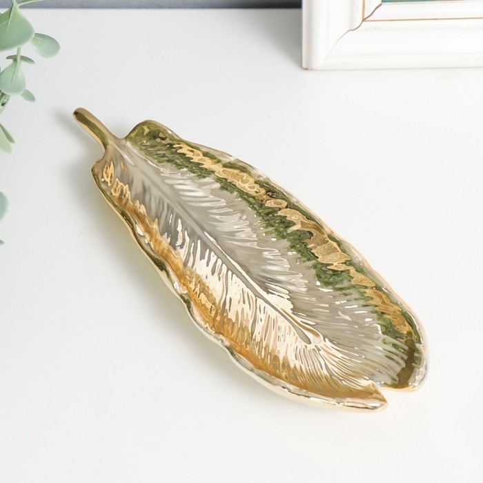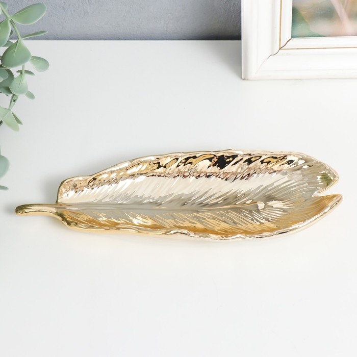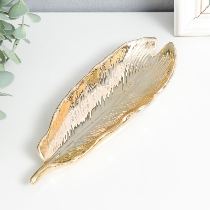 Сувенир керамика подставка "Пёрышко" золото 21х7,3х2,5 см