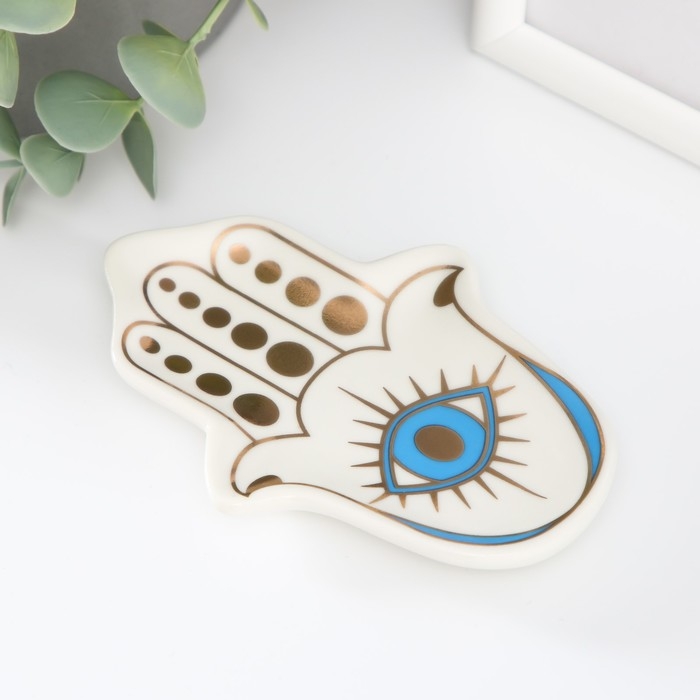 Сувенир керамика подставка под кольца "Рука Фатимы" 8х11,8х1,6 см