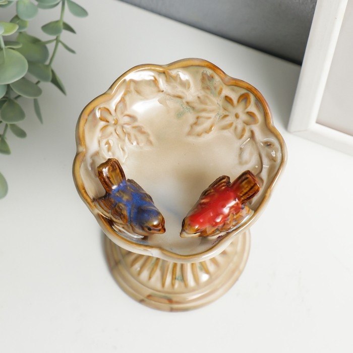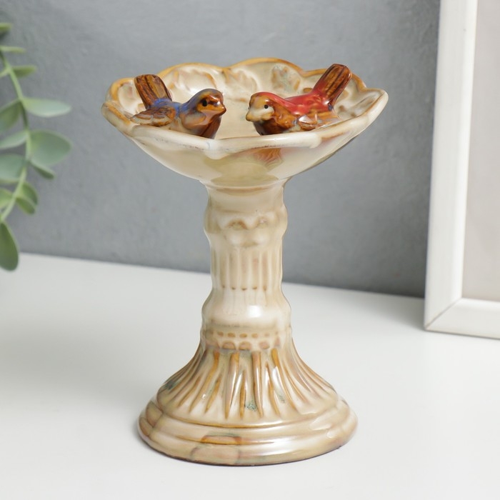 Сувенир керамика подставка "Птицы на колонне с чашей" 15х10,5х10 см