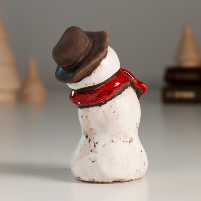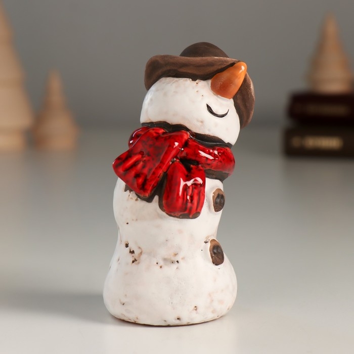Сувенир керамика "Радостный снеговик в шляпе и красном шарфе" 4,3х5,8х8,9 см