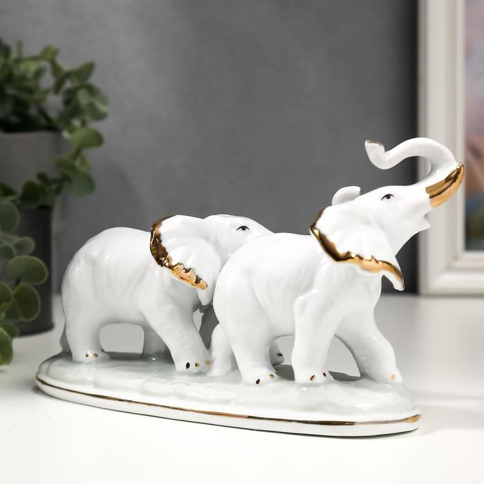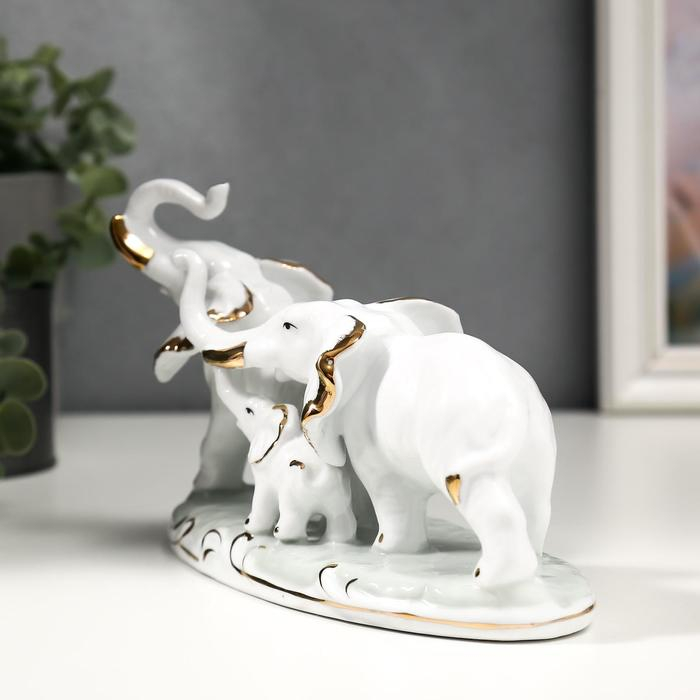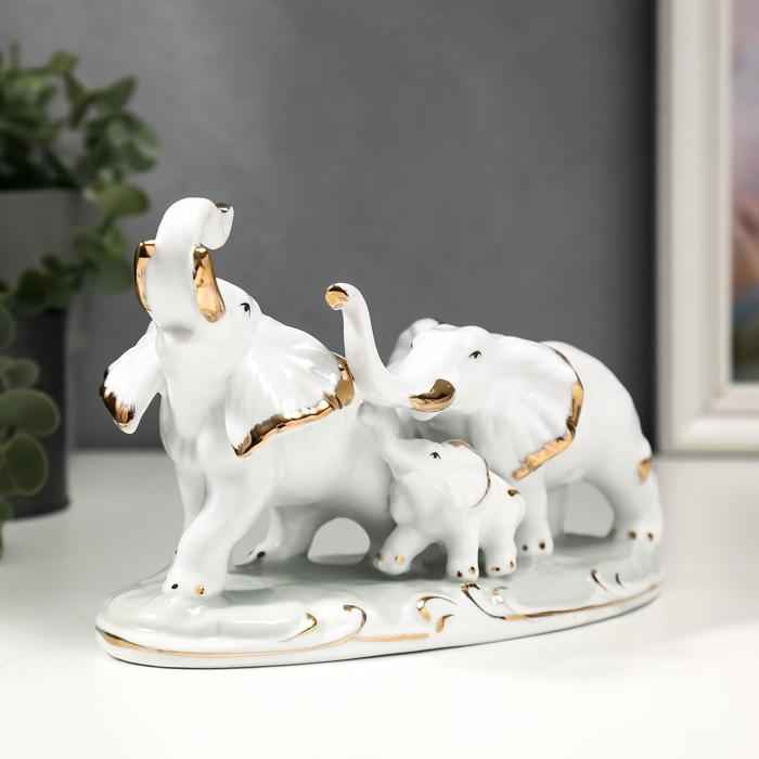 Сувенир керамика "Семейство слонов" белый с золотом 21,5 см