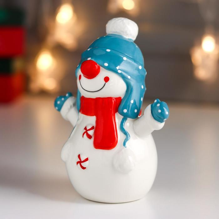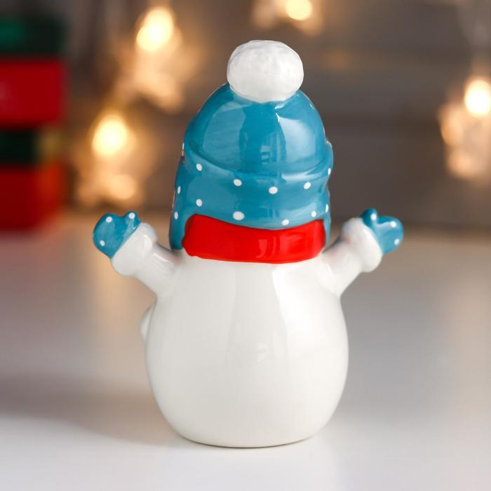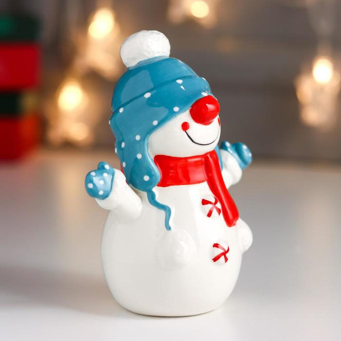 Сувенир керамика "Снеговичок, шапка-ушанка и красный шарф" 13,6х7,2х10,9 см