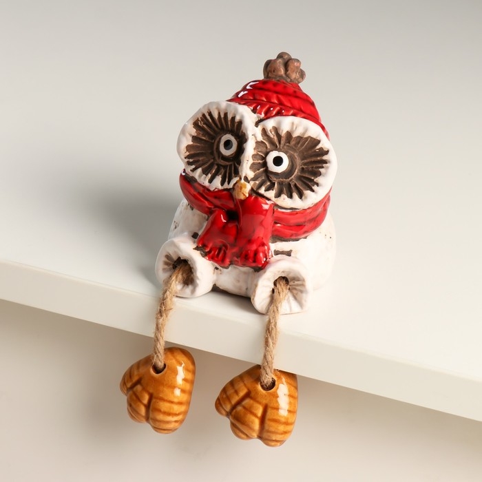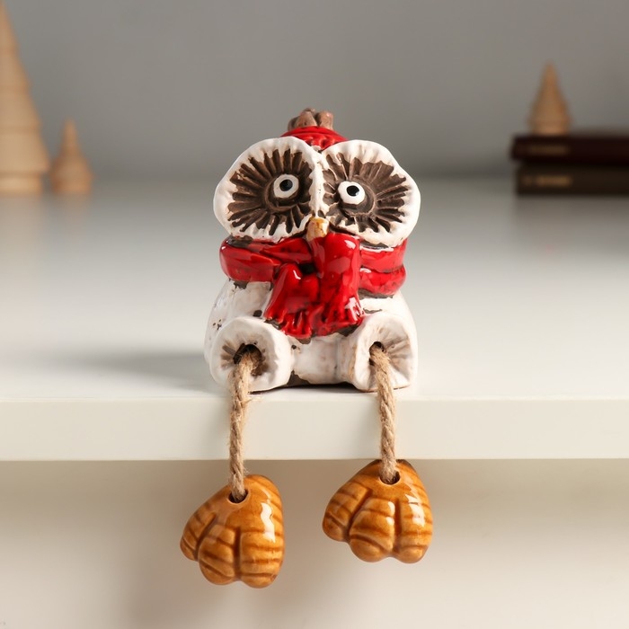 Сувенир керамика "Совенок в красном шарфе с висячими ножками" 7,2х7,3х8 см