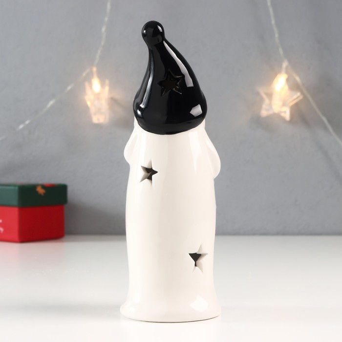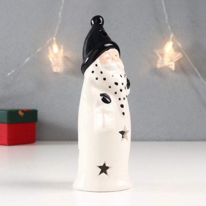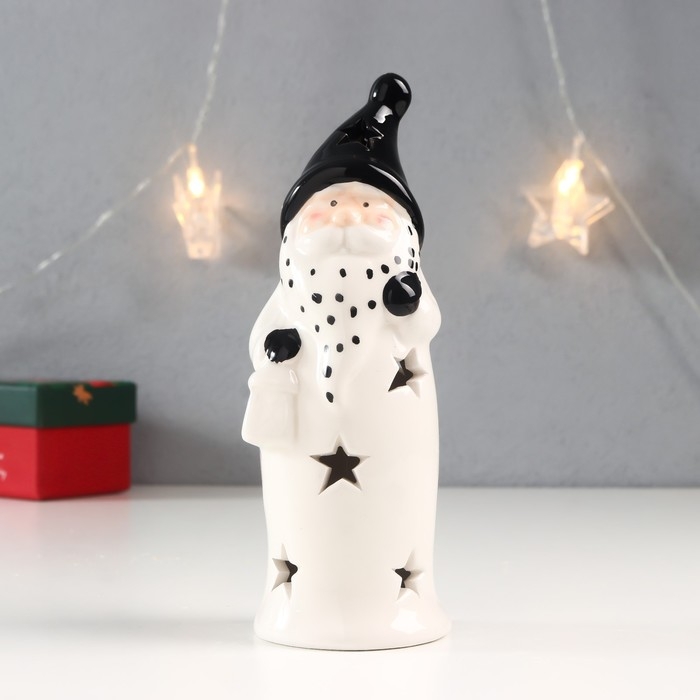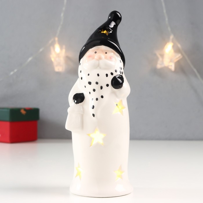 Сувенир керамика свет "Дед Мороз, чёрный колпак, борода в горох, с фонарём" 17,8х6,2х6,2 см 762031