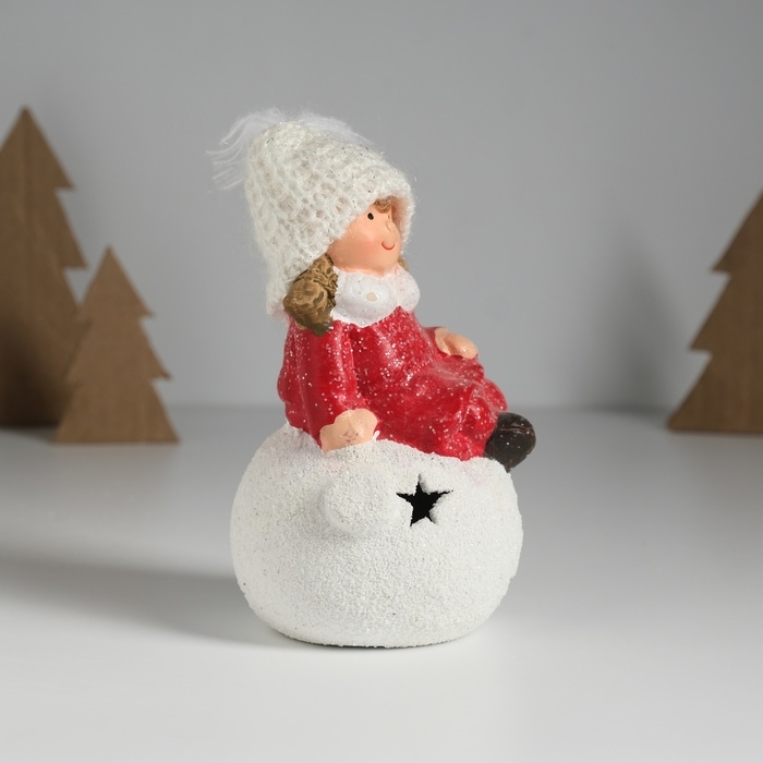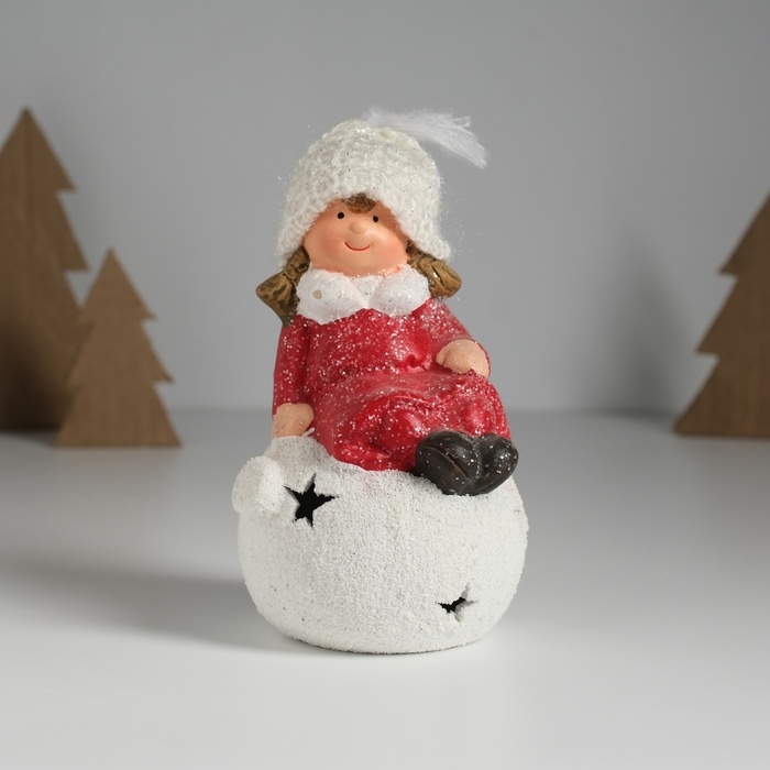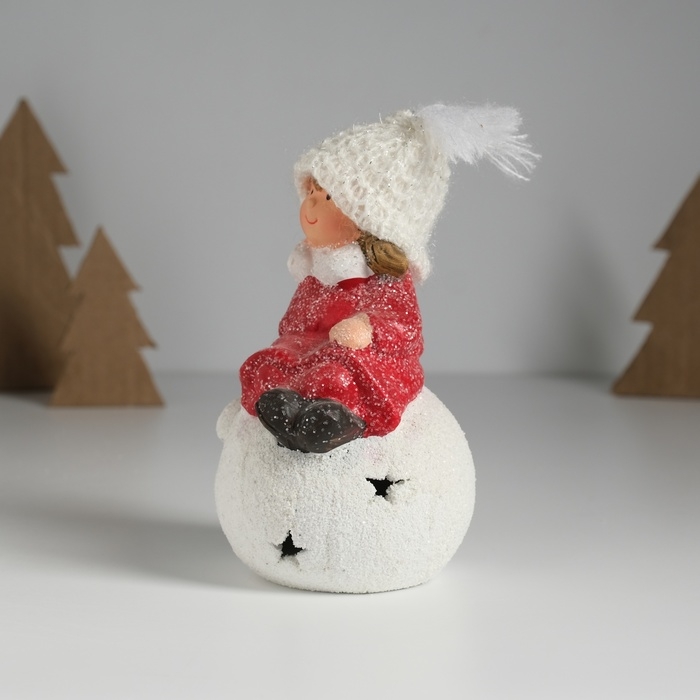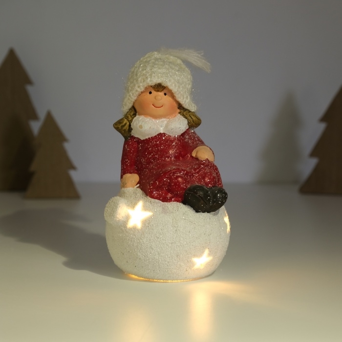 Сувенир керамика свет "Малышка-ангел в красном, на новогоднем шарике" 12,8х8,5х17 см