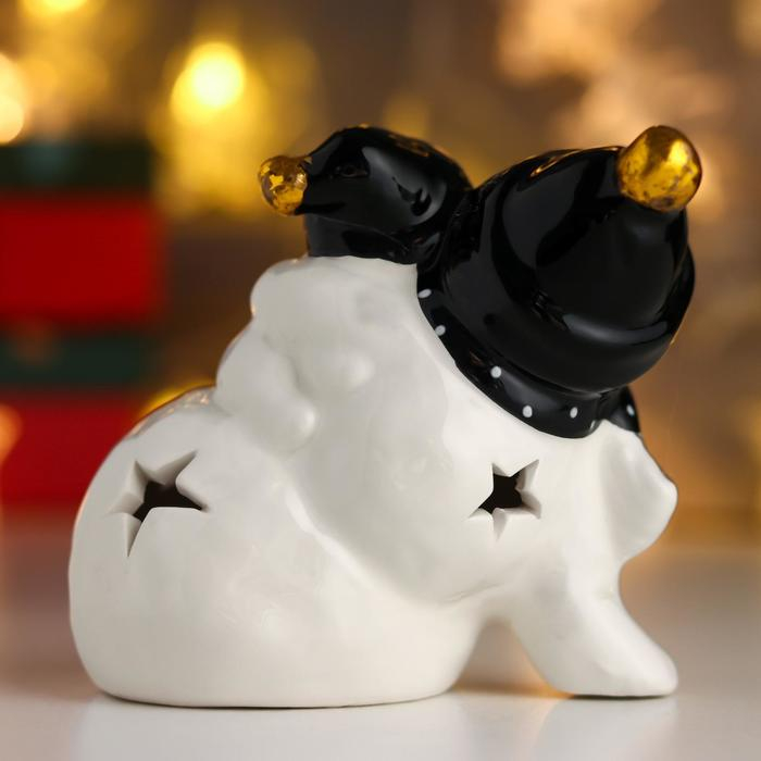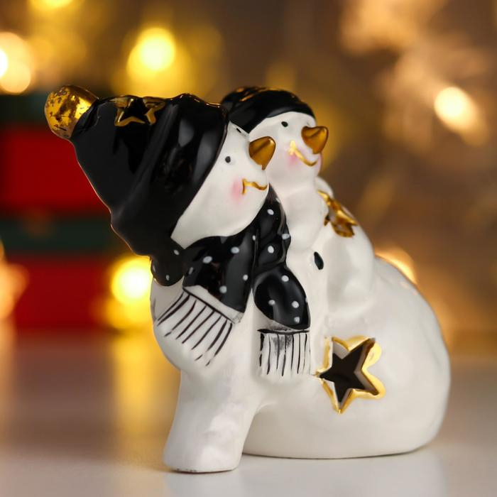 Сувенир керамика свет "Снеговички, чёрные колпаки и шарфы" 10х12х8 см