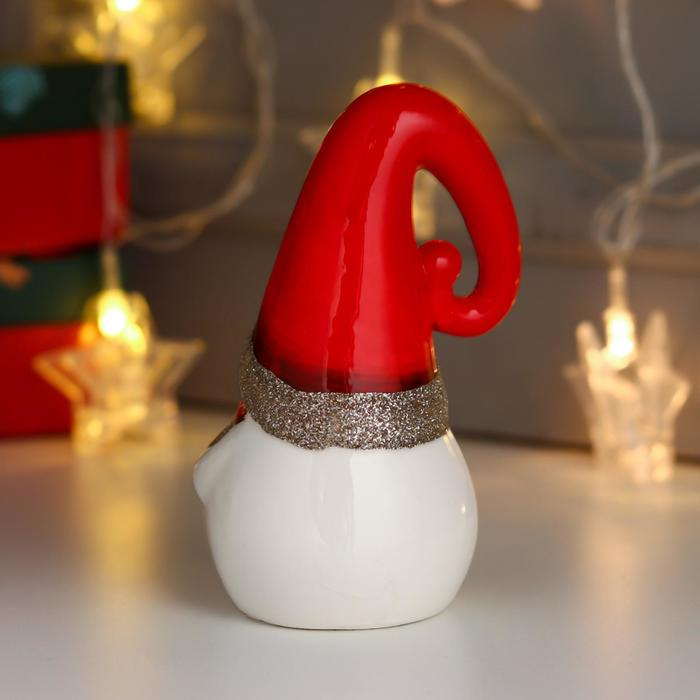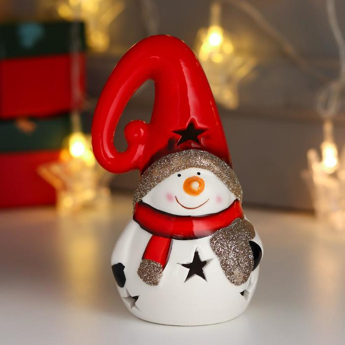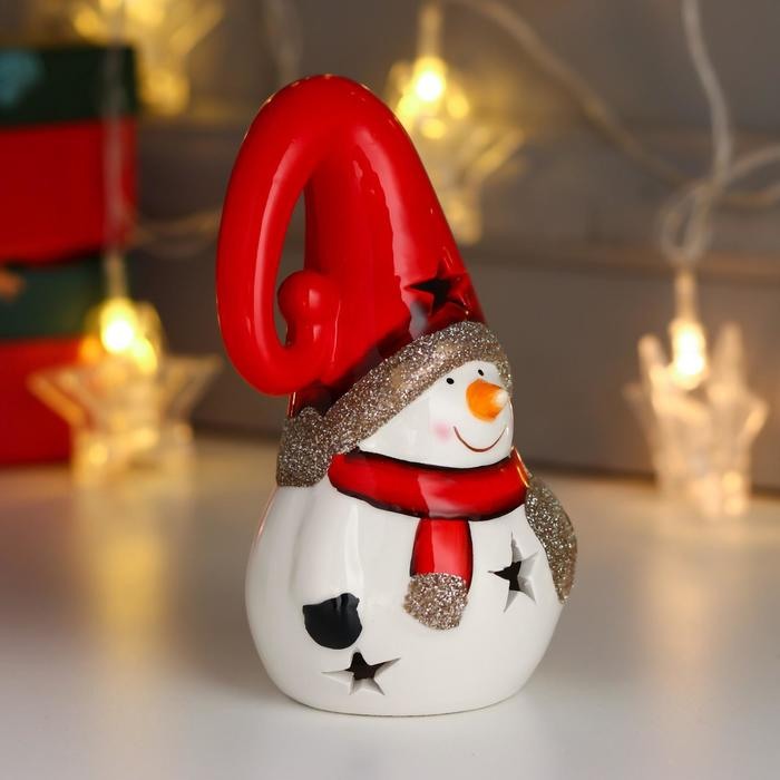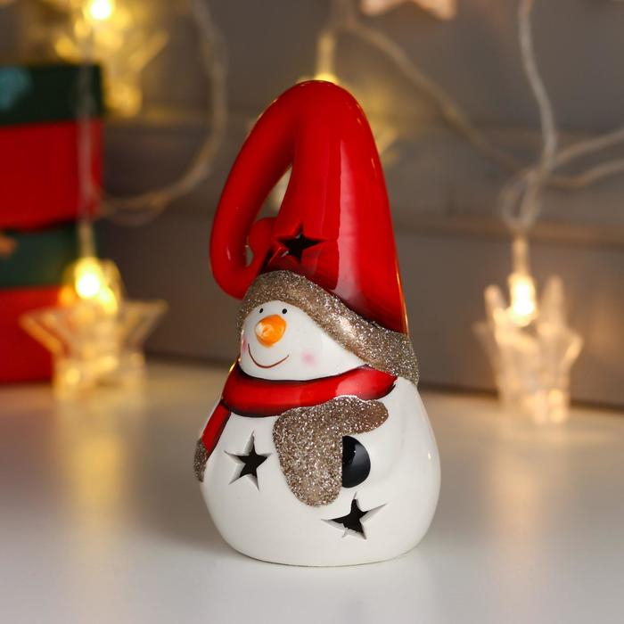 Сувенир керамика свет "Снеговик, красный шарф и колпак, золотое сердце" 13,5х7,5х7,5 см