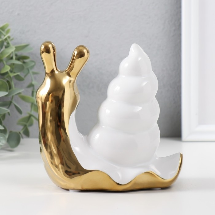 Сувенир керамика "Улитка" золото с белым 13,5х6,5х13,5 см