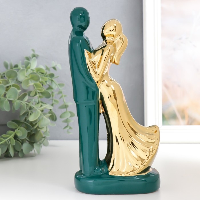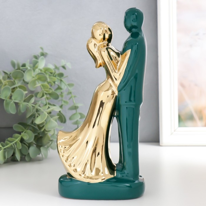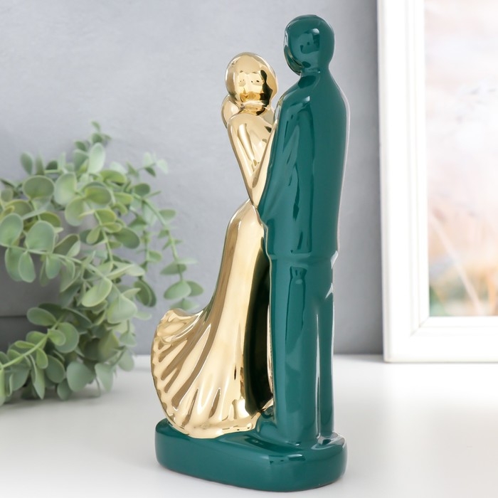 Сувенир керамика "Влюблённые" тёмно-зелёный с золотом 22х10х6,5 см
