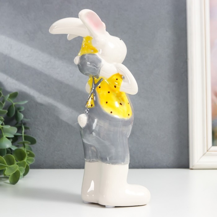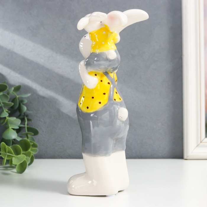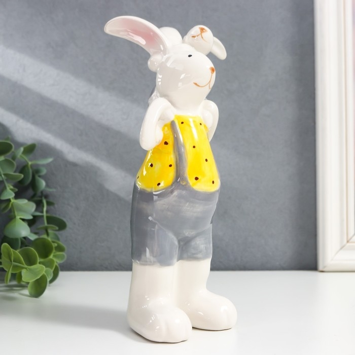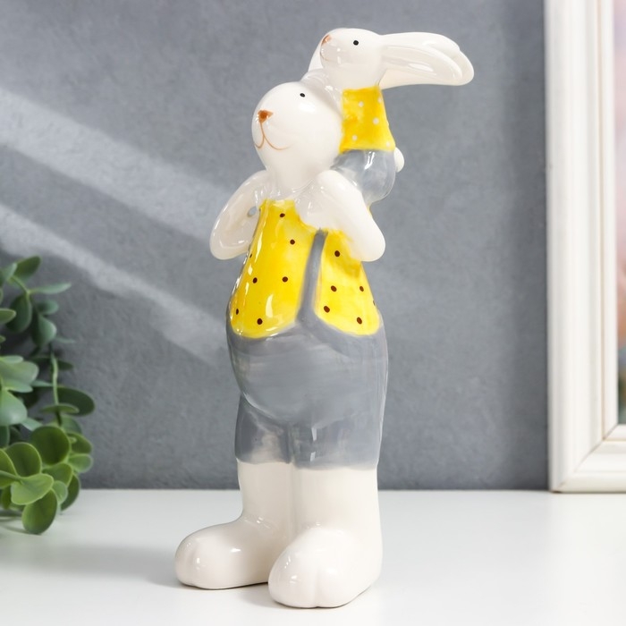 Сувенир керамика "Зайка на плечах у папы" жёлтый, 10х9,5х21 см