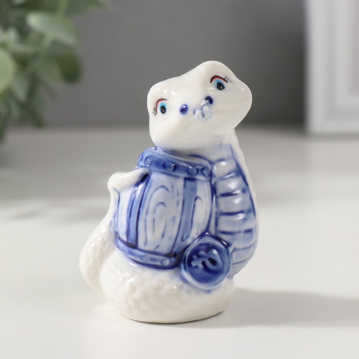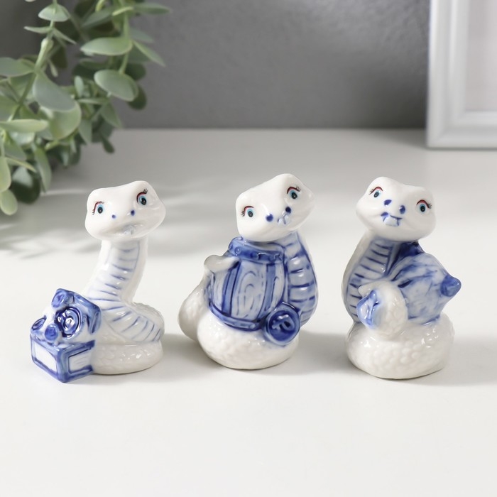 Сувенир керамика "Змейка с сокровищами" бело-синяя набор 3 шт 4,5х4,8х7 см