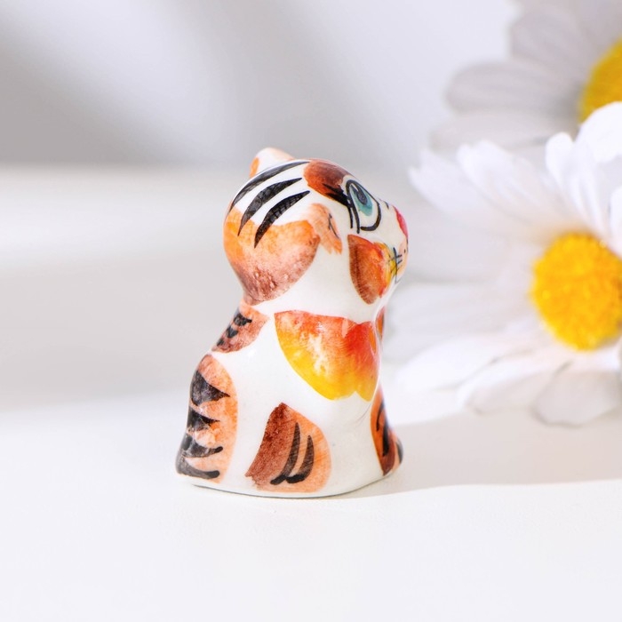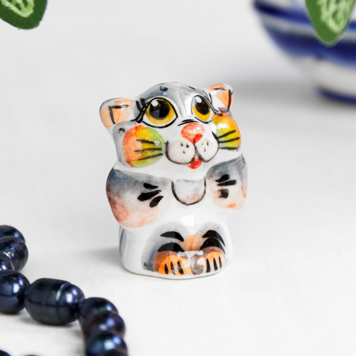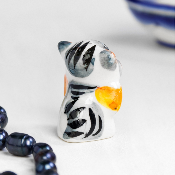 Сувенир «Кот с бантом», 3 см, цвет, гжель