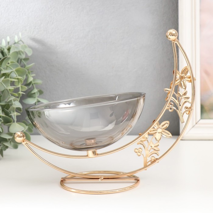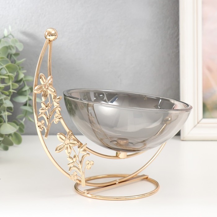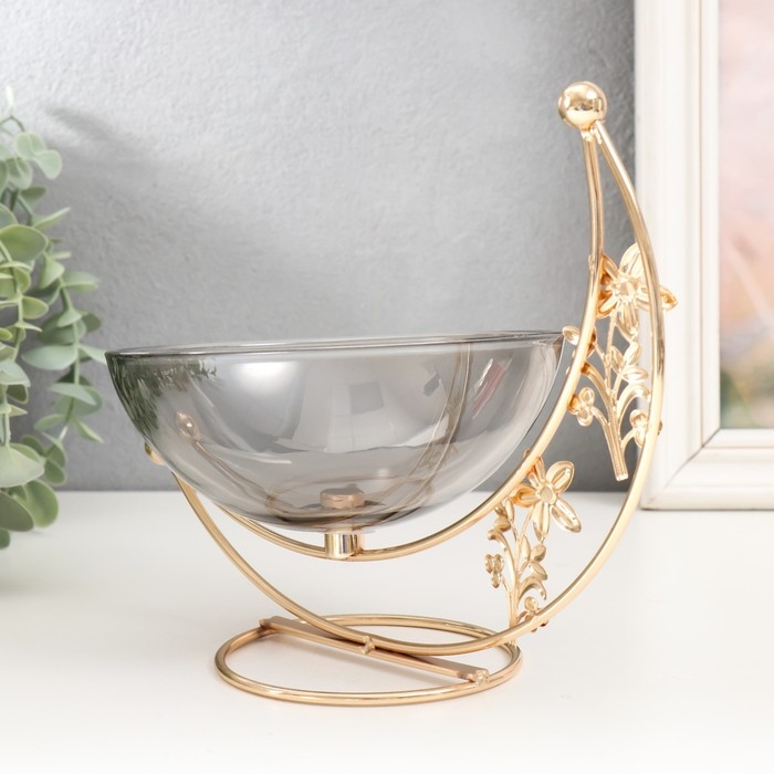 Сувенир металл, стекло подставка "Чаша на цветочном месяце" d-15 см золото 21,5х10х2 см