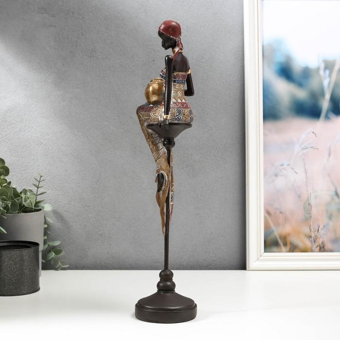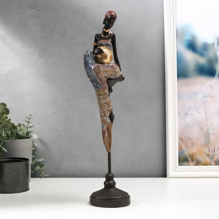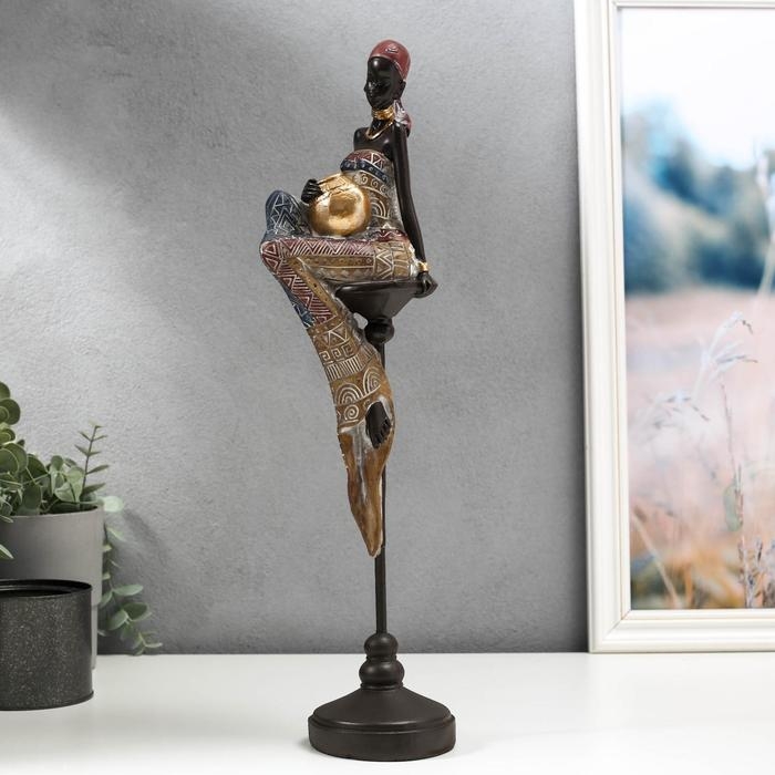 Сувенир полистоун "Африканка с кувшином, в наряде - геометрия, на стуле" 43х11х9,3 см