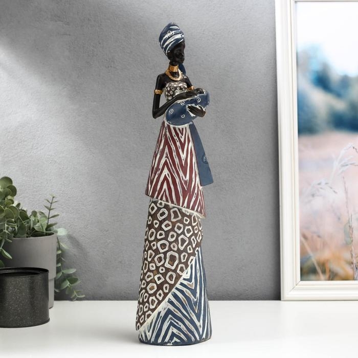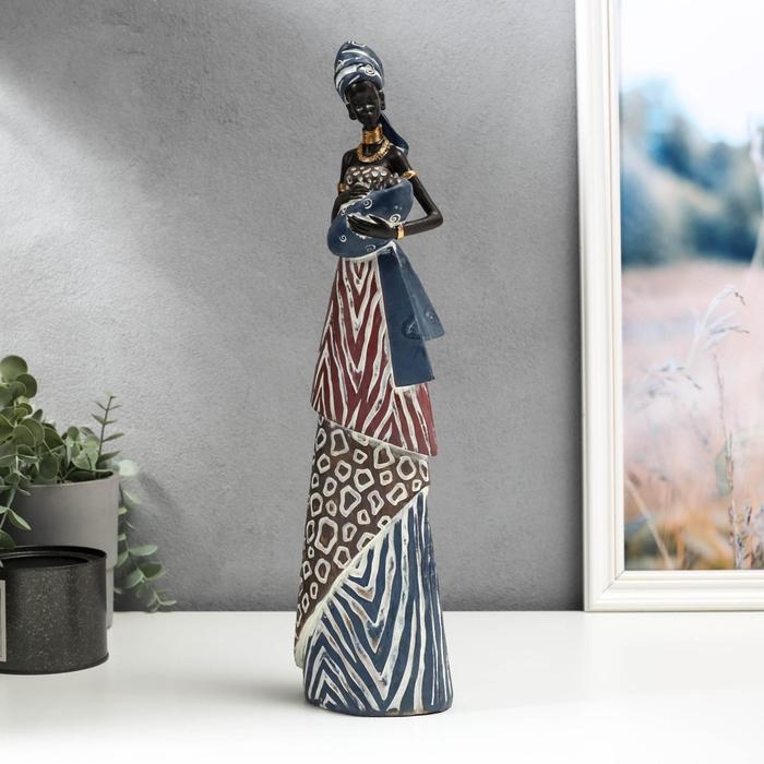 Сувенир полистоун "Африканка с младенцом в наряде под зебру" 43,5х8х11,5 см