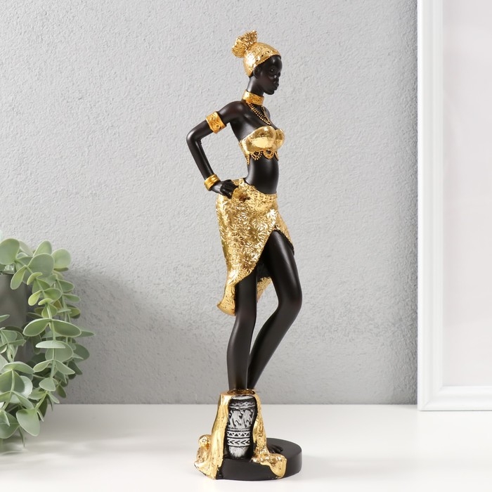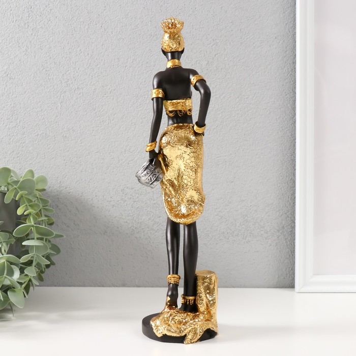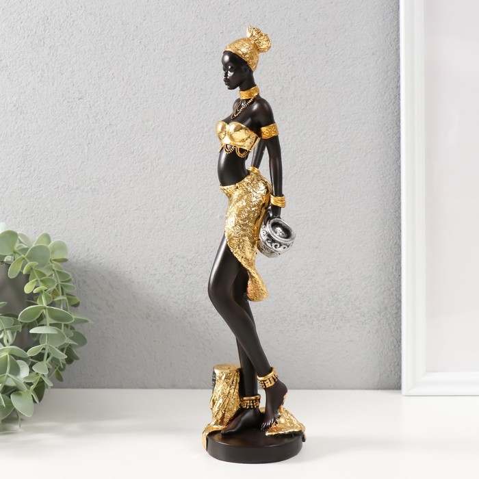 Сувенир полистоун "Африканка в золотом с кувшином в руке" 7х7х29 см