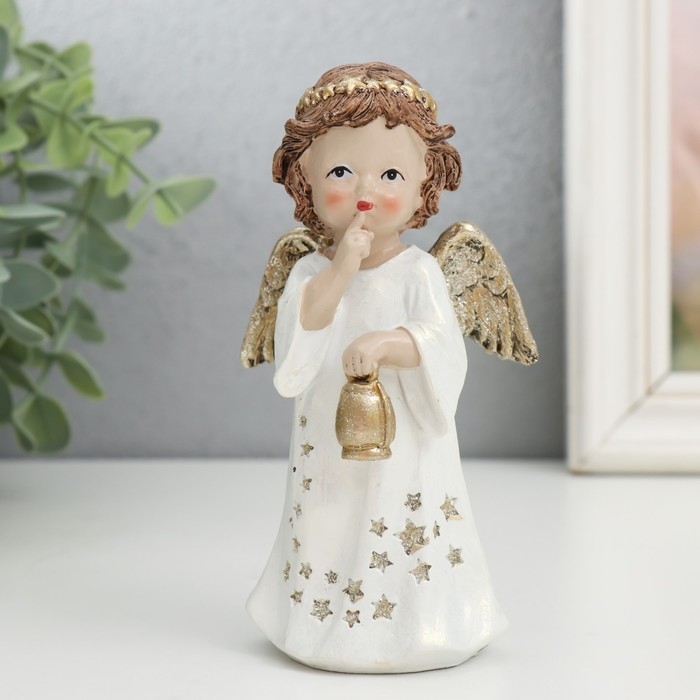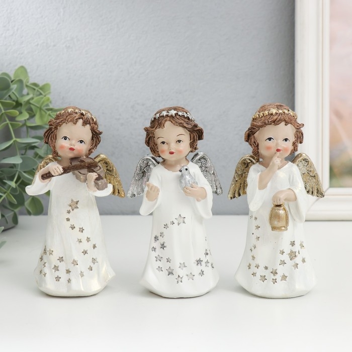 Сувенир полистоун "Ангелочек в платье со звёздами и в венке" МИКС 7х5х13 см