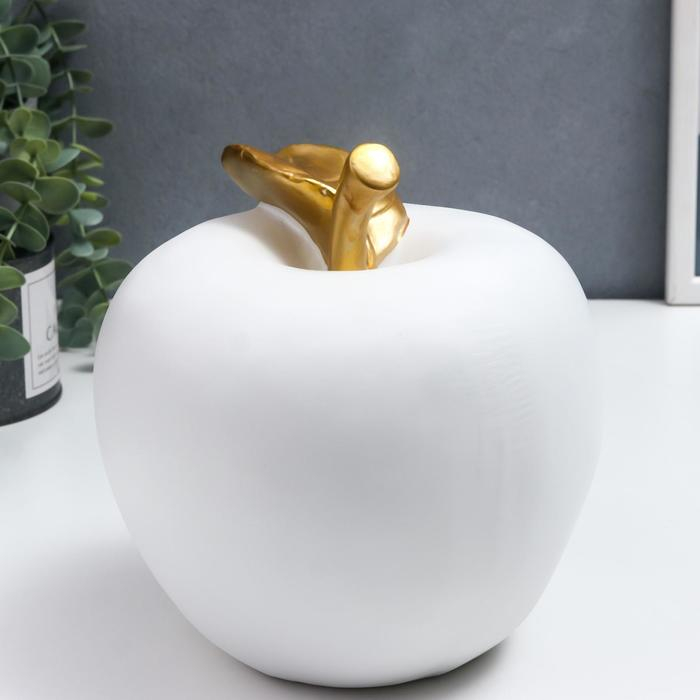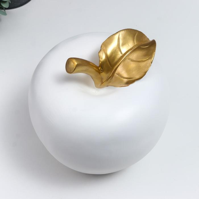 Сувенир полистоун "Белое яблоко с золотым листочком" 18,5х17х17 см