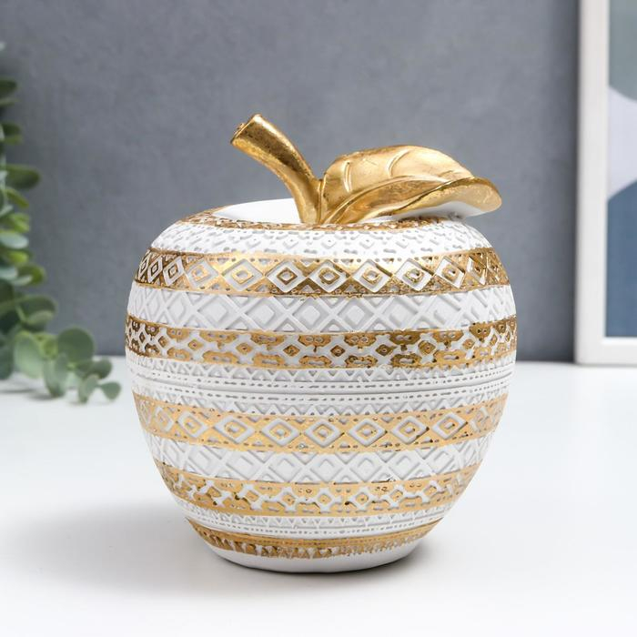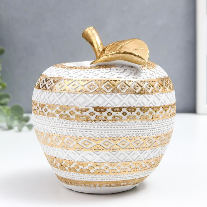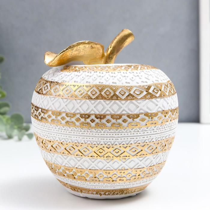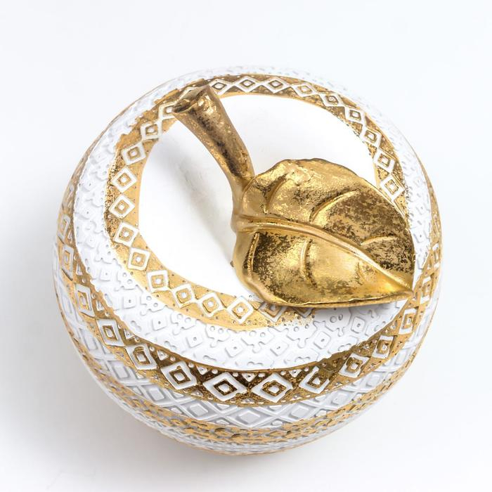 Сувенир полистоун "Белое яблоко с золотыми геометрическими узорами" 13,5х13х13 см