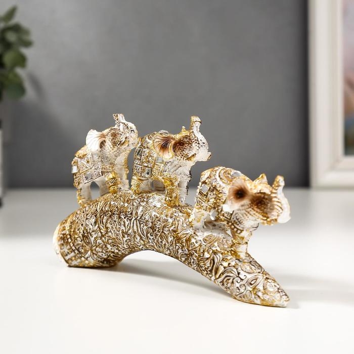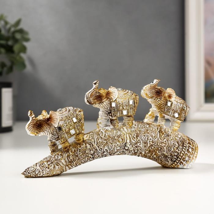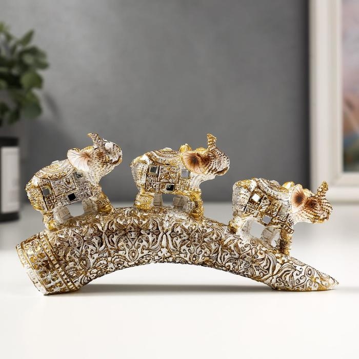 Сувенир полистоун "Белые слоны с попоной из арабского ковра на роге" 9х14х4 см