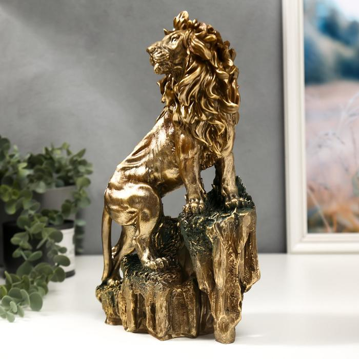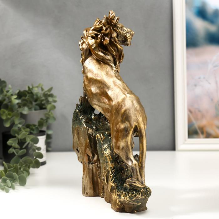 Сувенир полистоун "Бронзовый лев на вершине скалы" 31х19х8 см
