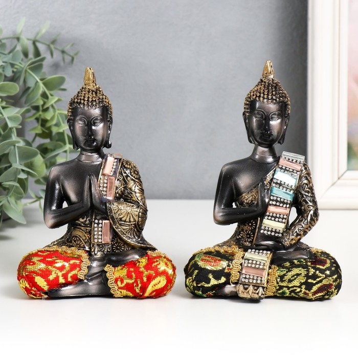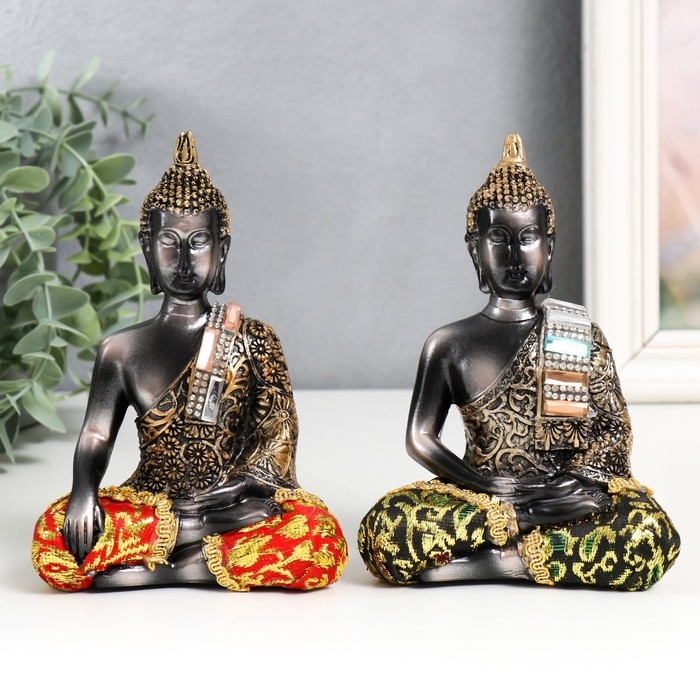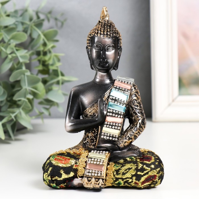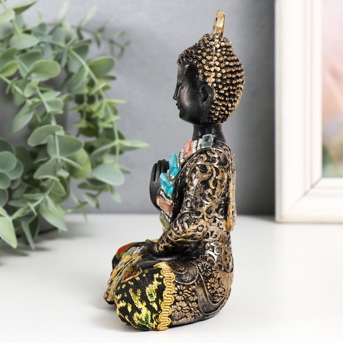 Сувенир полистоун "Будда в цветной тоге с узорами. Сидит" МИКС 10х6,2х15,5 см