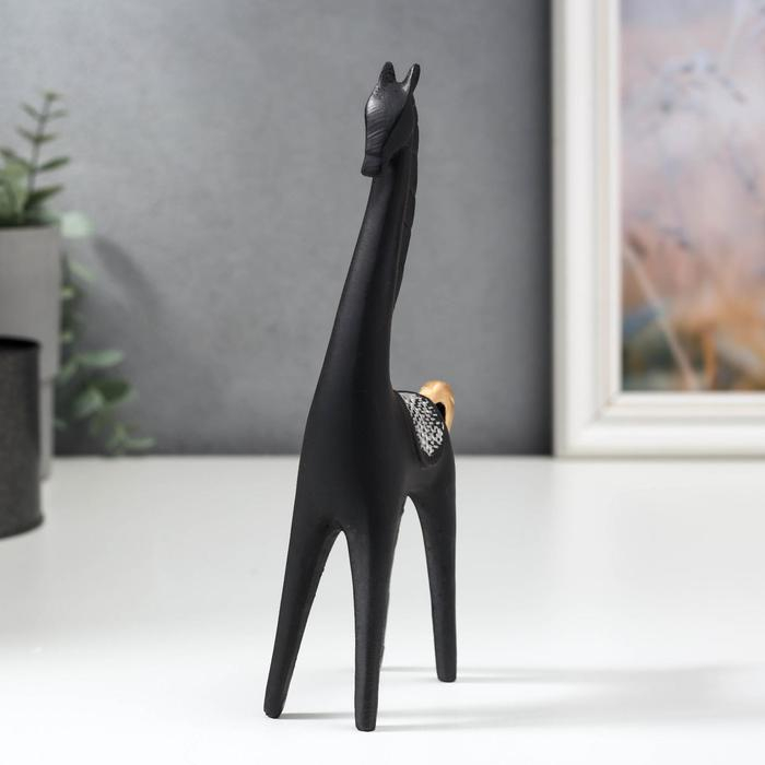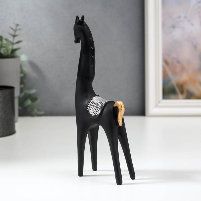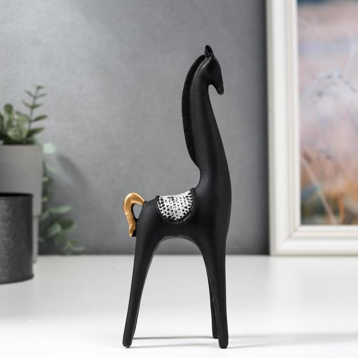 Сувенир полистоун "Чёрный конь с золотой гривой" 18,5х6,8х3,3 см
