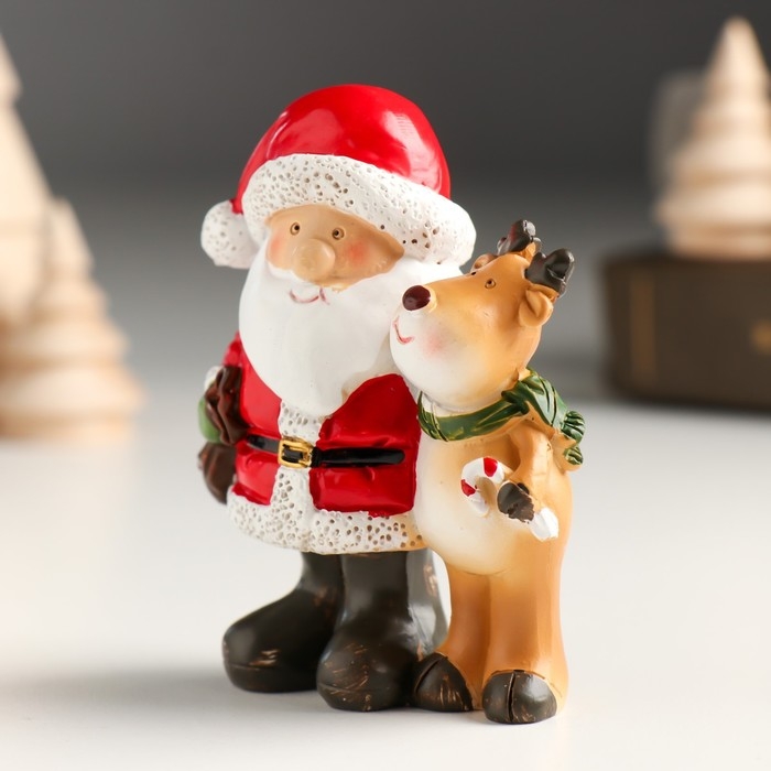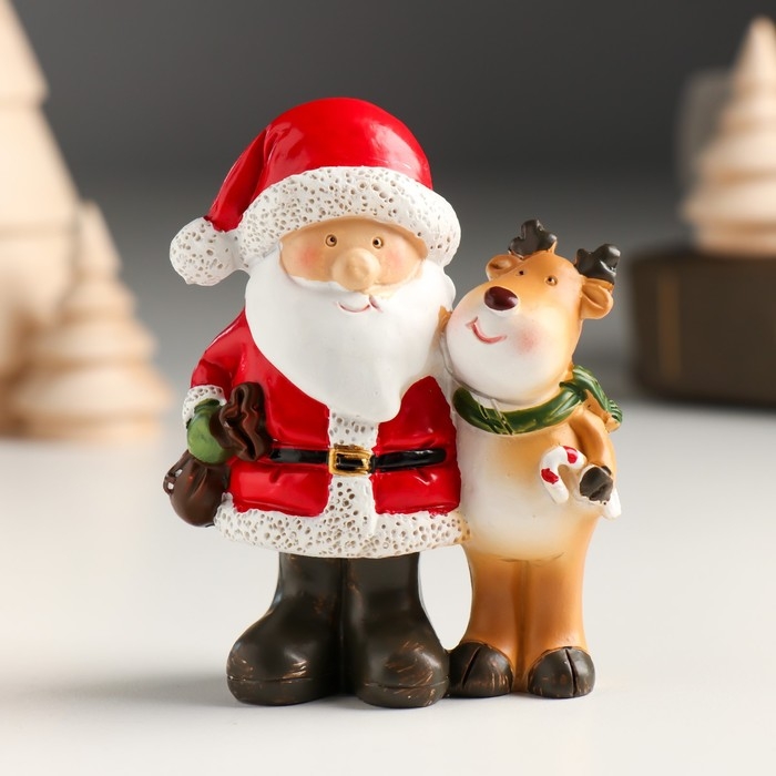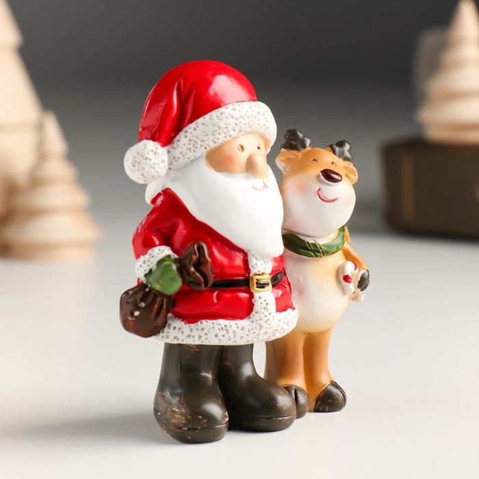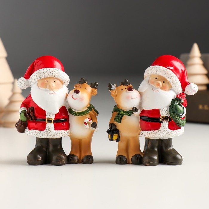 Сувенир полистоун "Дед Мороз с помощником-олешкой" МИКС 6,6х4х8 см