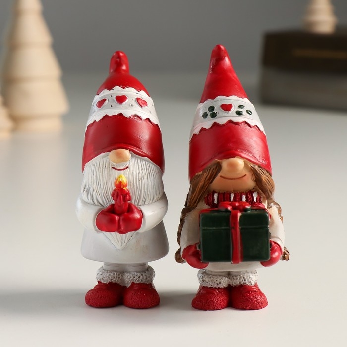 Сувенир полистоун "Дед Мороз со свечой/Бабуся с подарком" МИКС 6,5х4,5х10 см