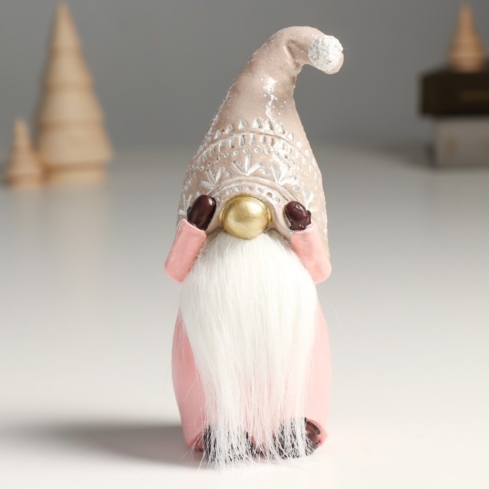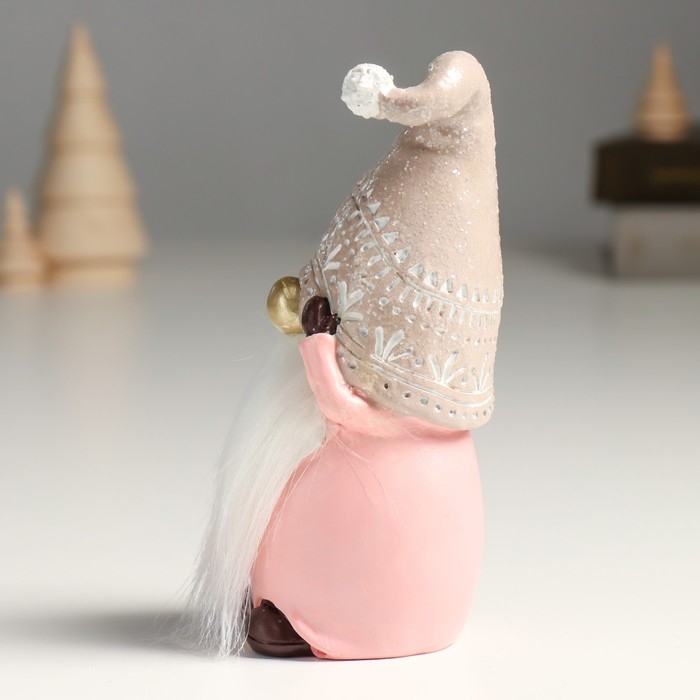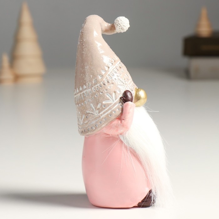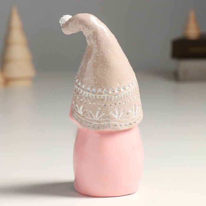 Сувенир полистоун "Дед Мороз в бежево-розовом наряде, колпак съехал на глаза" 6,5х6х16,5 см 957191