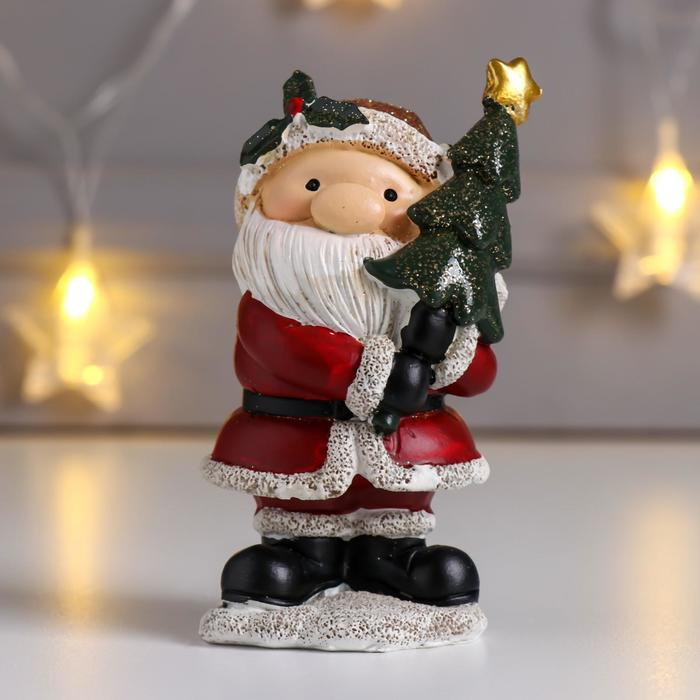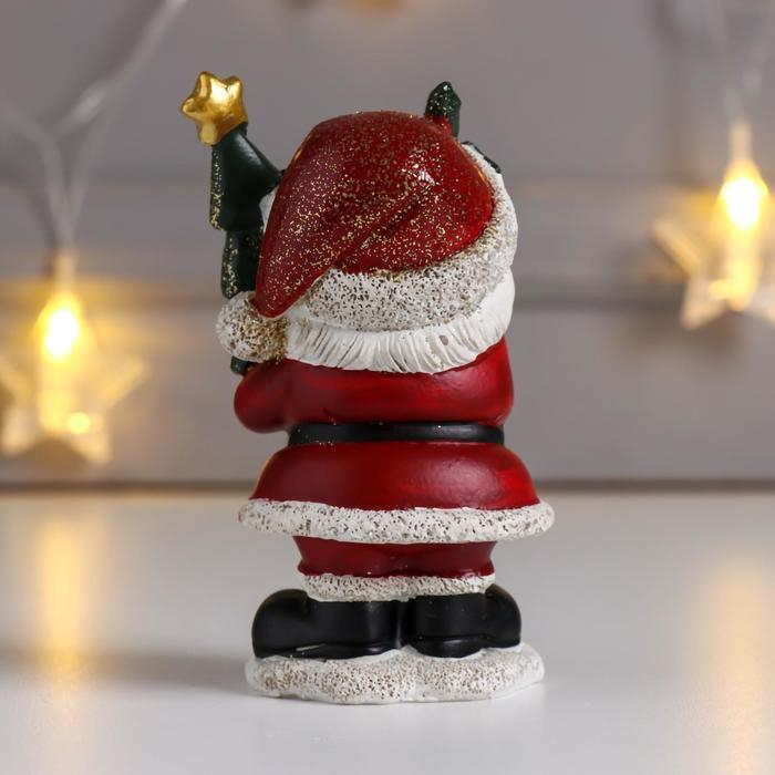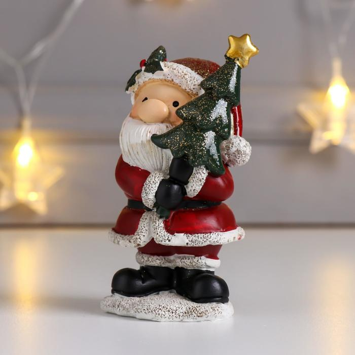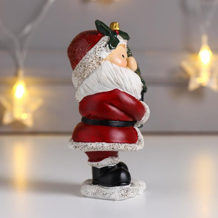 Сувенир полистоун "Дед Мороз в красной шубе, с ёлочкой" 10,5х5,5х7 см