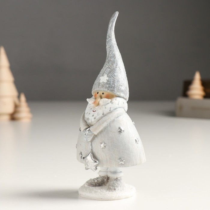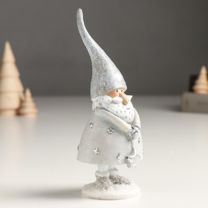 Сувенир полистоун "Дед Мороз в серебристом наряде, со звёздочкой" 5х6,5х15,5 см