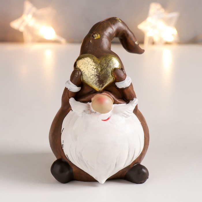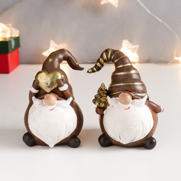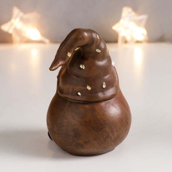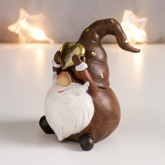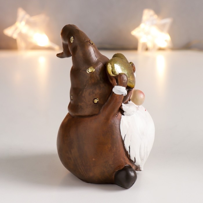 Сувенир полистоун "Дедушка Мороз в колпаке с золотым горошком/полосками" корица 10х6,5х6 см 756789