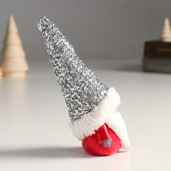 Сувенир полистоун "Дедушка Мороз в красной шубе, колпак с мишурой" 4,5х4х14 см