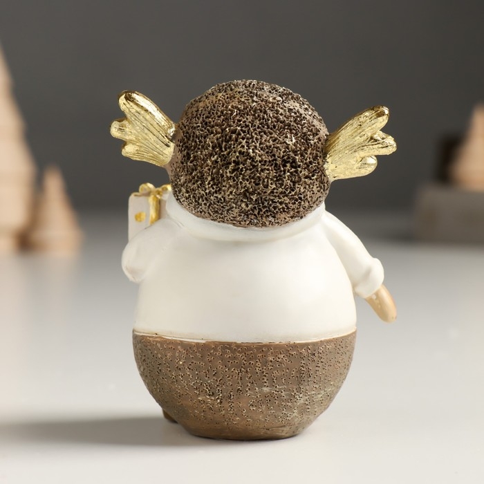 Сувенир полистоун "Дедушка Мороз в шапке с рожками, с леденцом/подарком"золото МИКС 8х5х7 см 94988