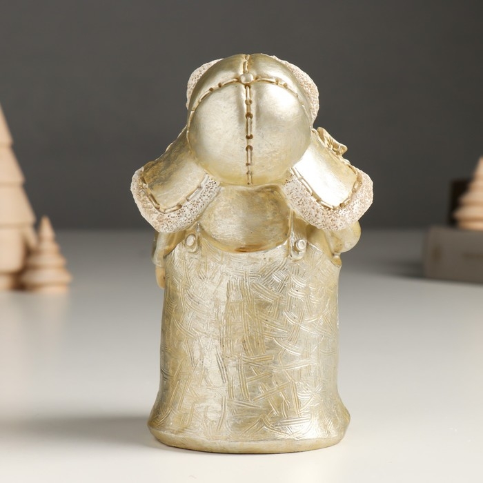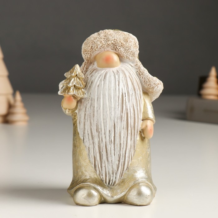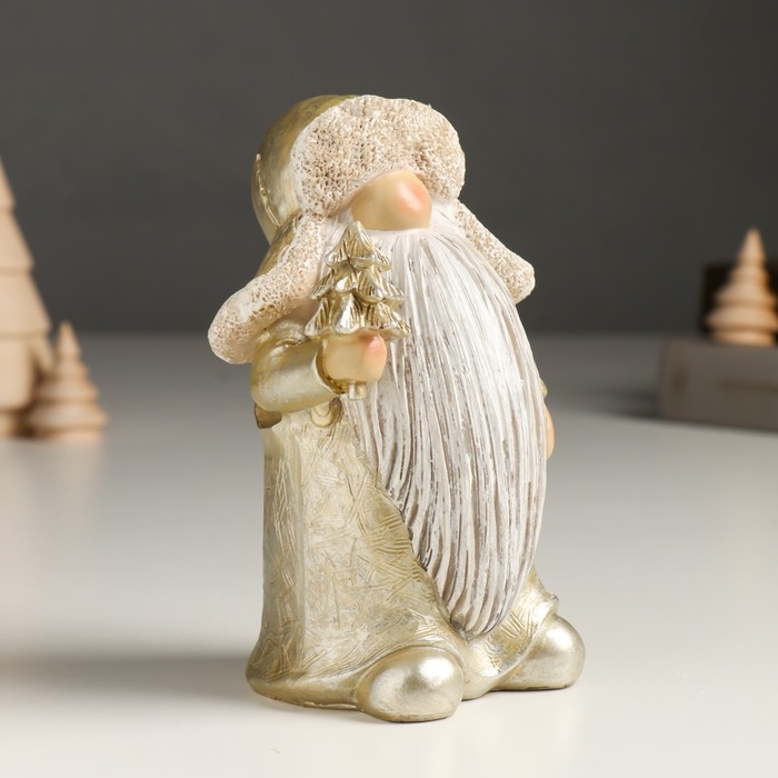 Сувенир полистоун "Дедушка Мороз в золотом наряде и шапке-ушанке с ёлочкой" 7х10х15 см